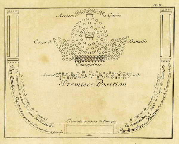 8vo. 264 pp. With 3 folding engr. plates. Contemp. calf with giltstamped red label to gilt spine. Marbled endpapers. All edges red. Second, enlarged edition, published a year after the first and now including "diverses observations sur les grandes actions qui se sont passées dans la dernière guerre d’Hongrie, et dans la présente en Moldavie". This is the first work of the Swiss-born De Warnery (1720-86), published in a German translation as early as 1766 (purportedly against his own wishes): according to the author, never one to eschew self-aggrandizement, he was the first to "unmask the Turks" and show that they did not warrant the fear with which they were usually viewed (cf. ADB XLI, 176). The plates show suggestions for battle arrays. - Unobtrusive repairs to lower cover of the appealing binding. Variously browned and brownstained due to paper. Rare. Formerly in the Ottoman collection of the Swiss industrialist Herry W. Schaefer. - Barbier IV, 257. Cf. Atabey 1321 (first ed. 1770). Not in Blackmer.