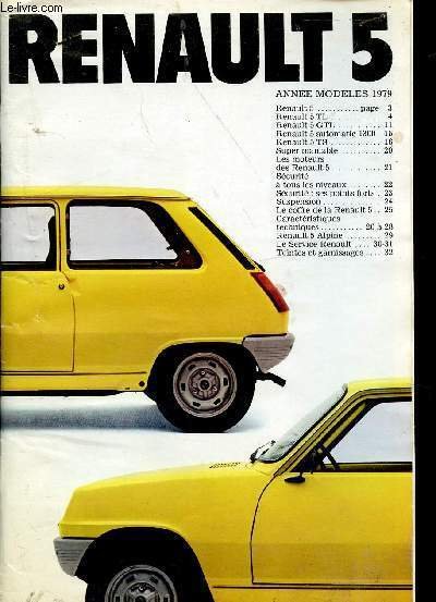 RENAULT 5 - MODELES 1979 - Renault 5, Renault 5TL, Renault 5 GTL, Renault 5 automatic 1300, Renault 5 TS, S�curit�, .