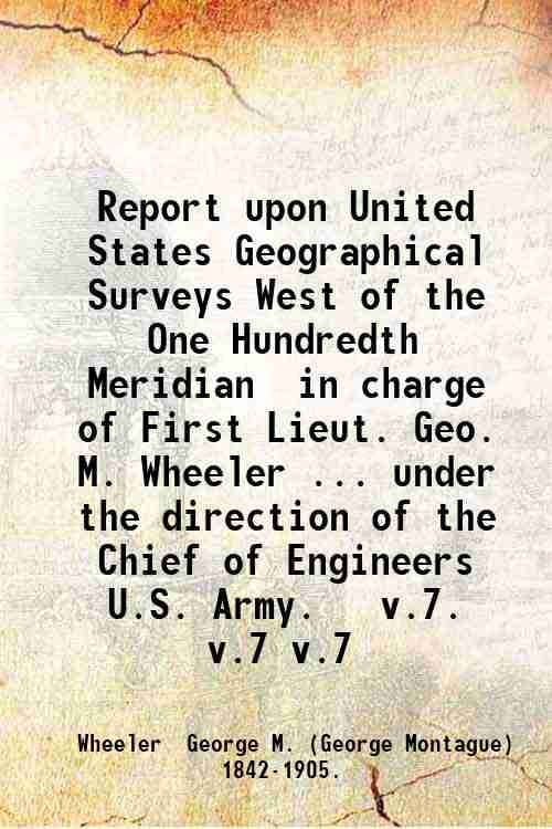 Report upon United States Geographical Surveys West of the One Hundredth Meridian / in charge of First Lieut. Geo. M. Wheeler . under the direction of the Chief of Engineers, U.S. Army. Volume 7 1879
