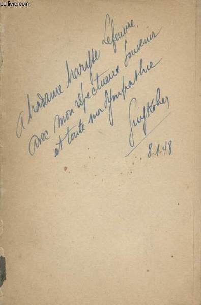 1947. In-12. Broché. Etat d'usage, Livré sans Couverture, Dos abîmé, Papier jauni. 166 pages. Livre sans plats. Dos plié, manque en coiffe en tête. . . . Classification Dewey : 97.2-Dédicace, envoi