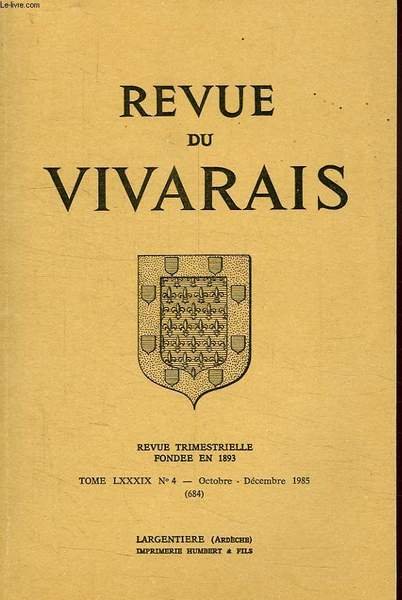 REVUE DU VIVARAIS, TOME LXXXIX, N° 4, 1985 (N° 684)