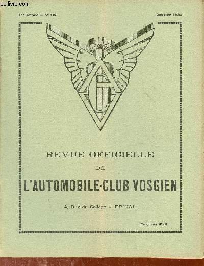 Revue officielle de l'automobile-club vosgien n�123 11e ann�e janvier 1935 - F�d�ration nationale des clubs automobiles de france r�union du conseil permanent - �quipement des v�hicules poids lourds - identification des cartes grises etc.