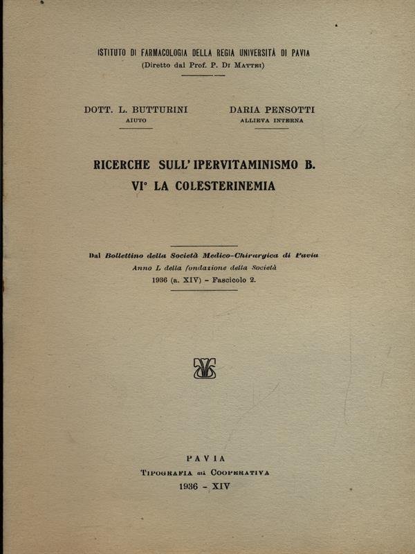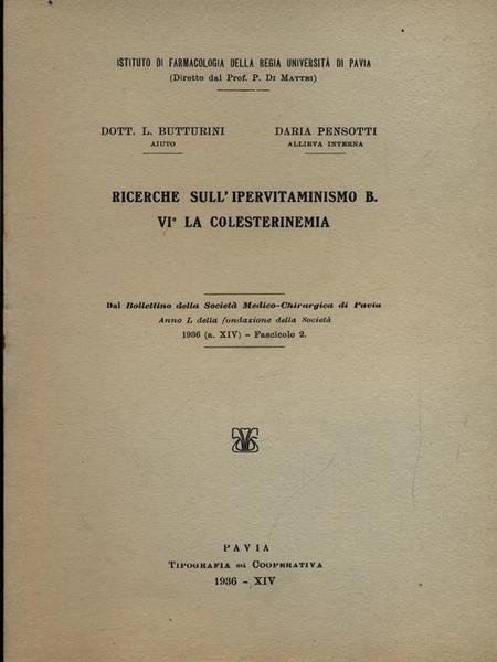Ricerche sull'ipervitaminismo B. VI la colesterinemia - Estratto | Libri antichi e moderni | Butturini, L. - Pensotti, Daria