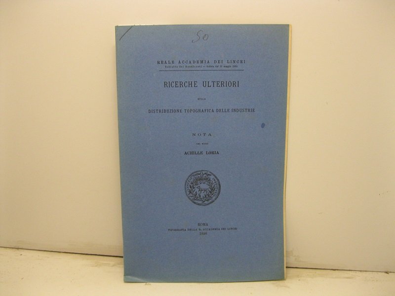 Ricerche ulteriori sulla distribuzione topografica delle industrie. Nota | Libri antichi e moderni | Loria Achille