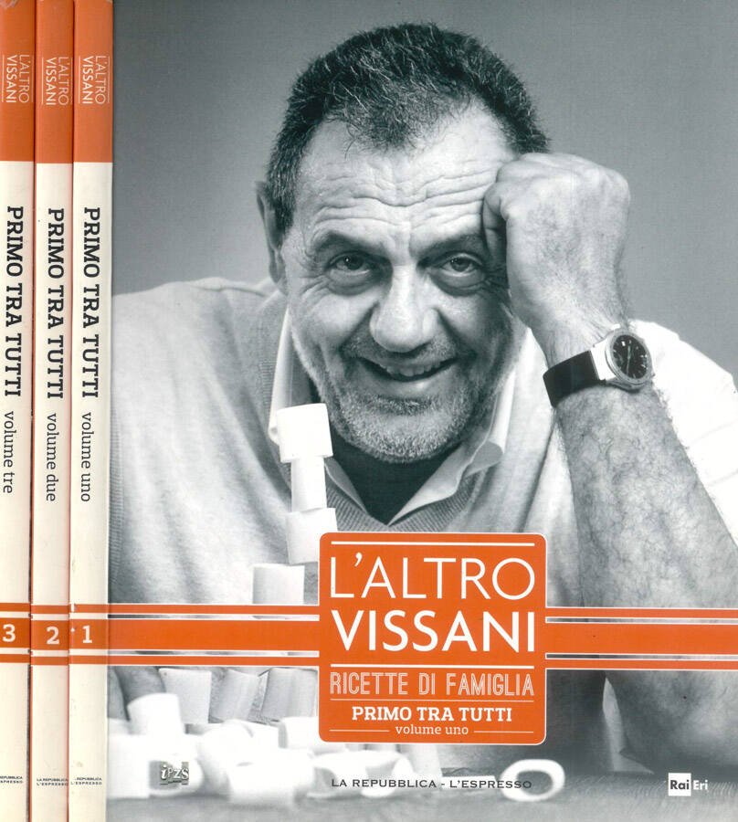 Tre volumi in buono stato, brossure con alette, presentano segni di usura, aloni, risvolti, piccoli strappi alle estremità, testo completamente fruibile. Pagine in buono stato, gore ai tagli. Collana L'altro Vissani, No. 1, 2 e 3. Immagini fuori e nel testo a colori e in bianco e nero. Edizione su licenza di Rai Radiotelevisione Italiana - Rai Eri. Numero pagine totale 479: Vol.I 159, Vol. II 160, Vol.III 160