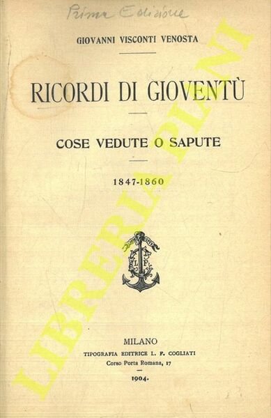 Ricordi di gioventù. Cose vedute o sapute. 1847-1860. | Libri antichi e moderni | Visconti Venosta Giovanni