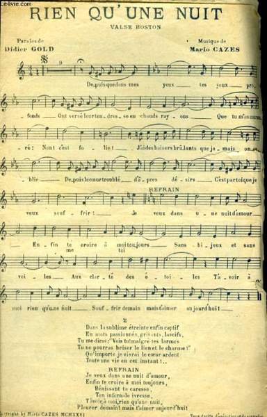 RIEN QY'UNE NUIT / TOI / VEUX - TU? / NAPOLETANA | Libri antichi e moderni | Cazes Mario