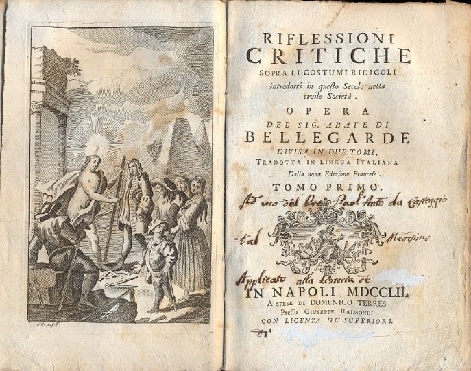 Riflessioni critiche sopra i costumi ridicoli introdotti in questo secolo nella civile società. | Libri antichi e moderni | Bellegarde Abate.