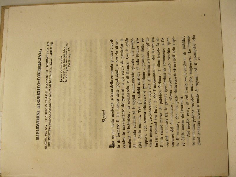 Riflessioni economico-commerciali | Libri antichi e moderni | Cantarelli Francesco