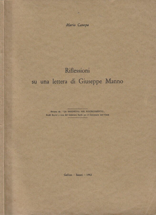Estratto da "La Sardegna nel Risorgimento". Studi storici a cura del Comitato Sardo per il Centenario dell'Unità. Il volume si presenta in buono stato di conservazione. Il dorso e le copertine mostrano lievi segni di usura. Le pagine interne sono leggermente ingiallite dal tempo e fruibili con sporadica fioritura. I tagli bruniti e regolari. La cerniera è ben salda. Numero pagine 68