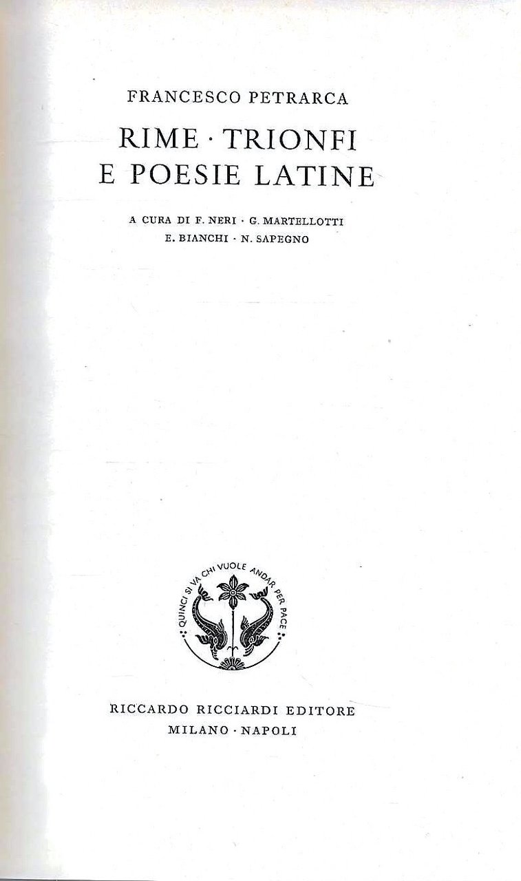 Rime - Trionfi e Poesie Latine. (La Letteratura Italiana - Storia e Testi Vol. 6) | Libri antichi e moderni | Petrarca, Francesco, ,Petrarca, Francesco