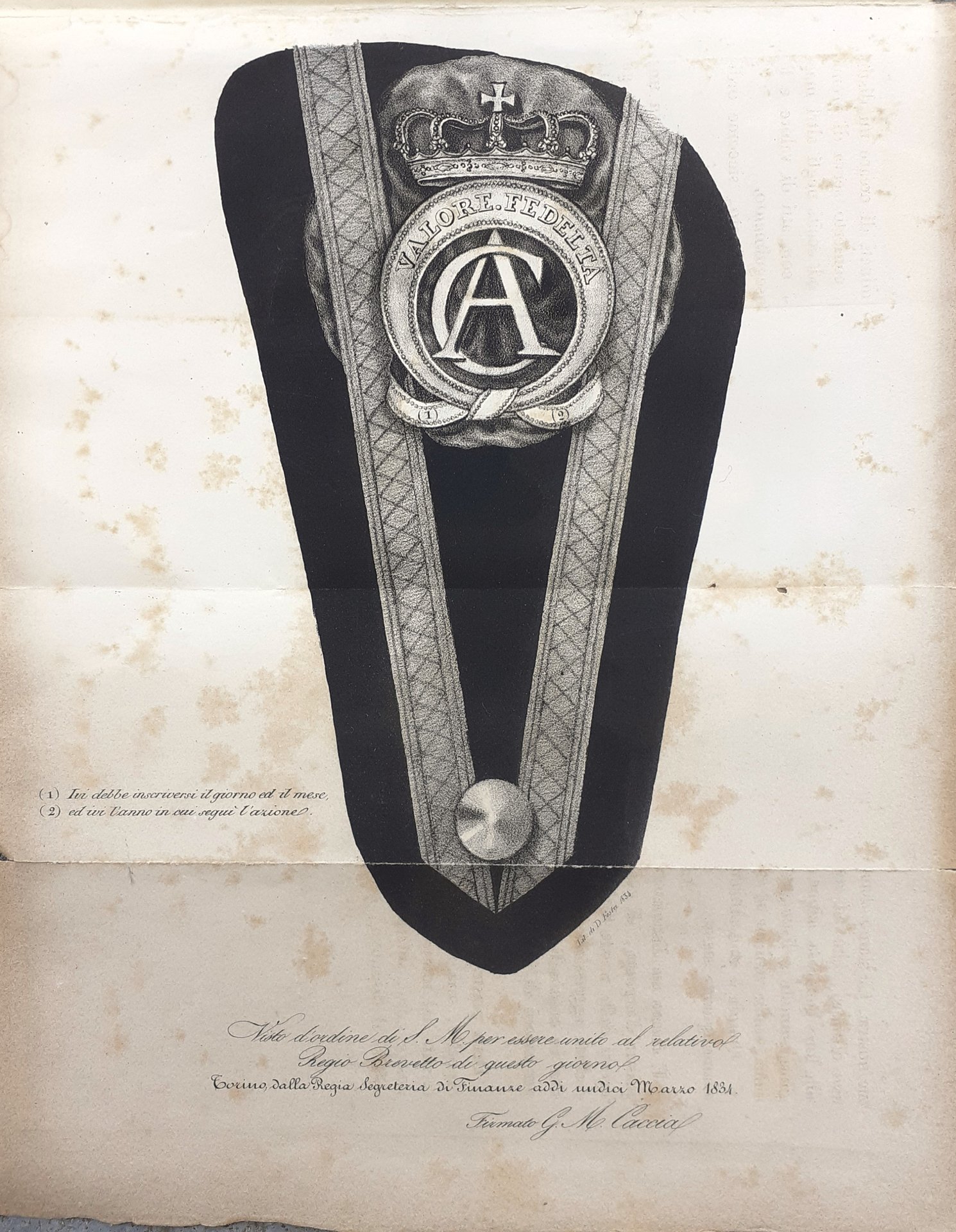 Risorgimento Atti del Governo Brevetto Carlo Alberto di Savoia 1834