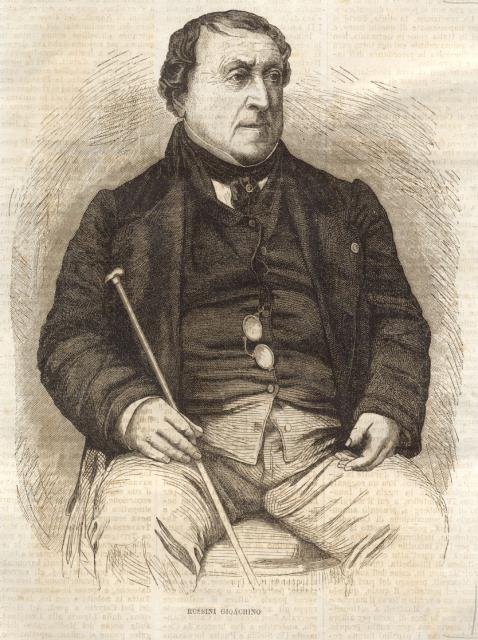 Ritratto in xilografia del musicista Gioacchino Rossini.