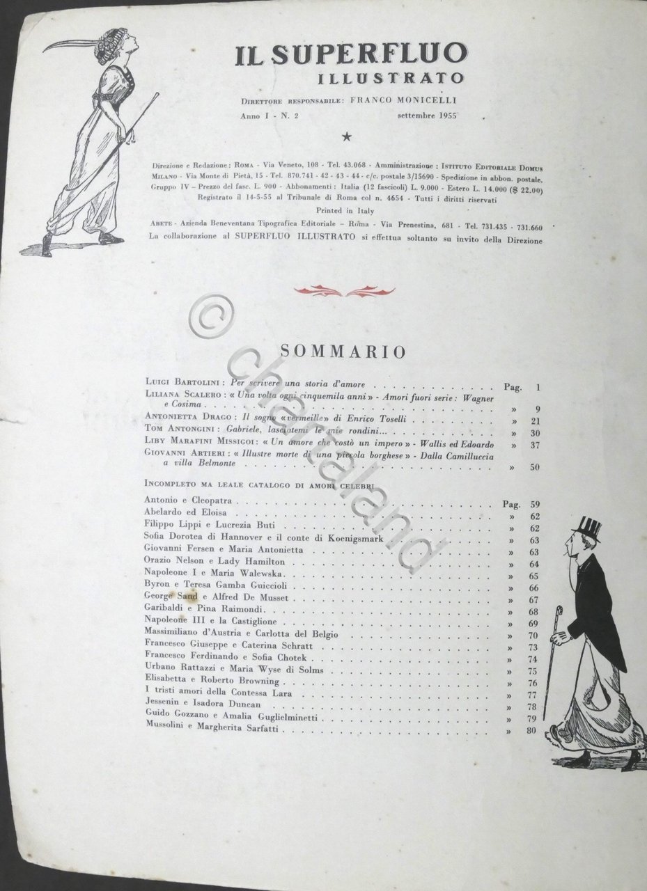 Rivista - Il Superfluo Illustrato , - Anno I - N. 2 - 1955 - Gli amori celebri