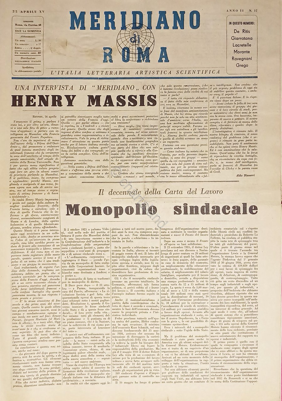 Rivista - Meridiano di Roma n. 17 - 1937 Un intervista con Henry Massis