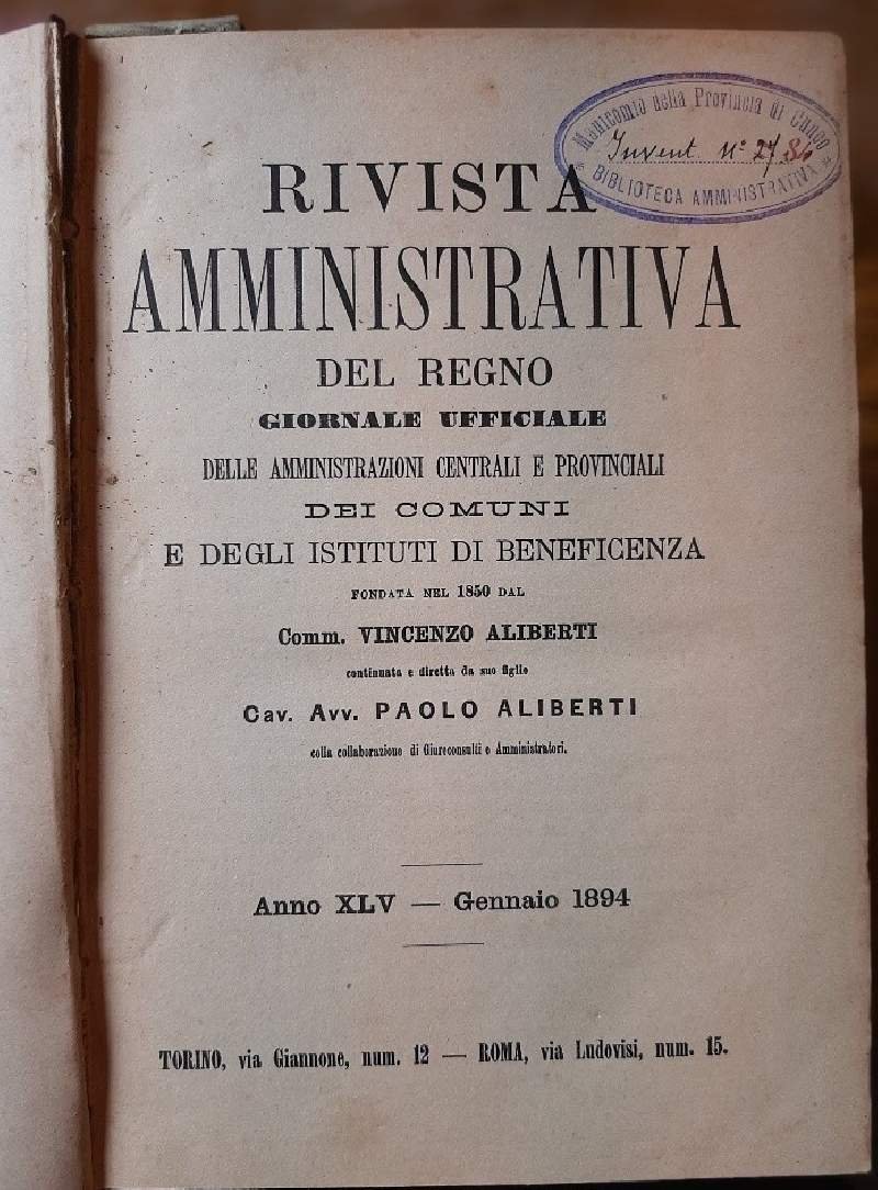 RIVISTA AMMINISTRATIVA DEL REGNO -GIORNALE UFFICIALE DELLE AMMINISTRAZIONI CENTRALI E PROVINCIALI DEI COMUNI E DEGLI | Libri antichi e moderni | Aliberti Vincenzo- Aliberti Paolo