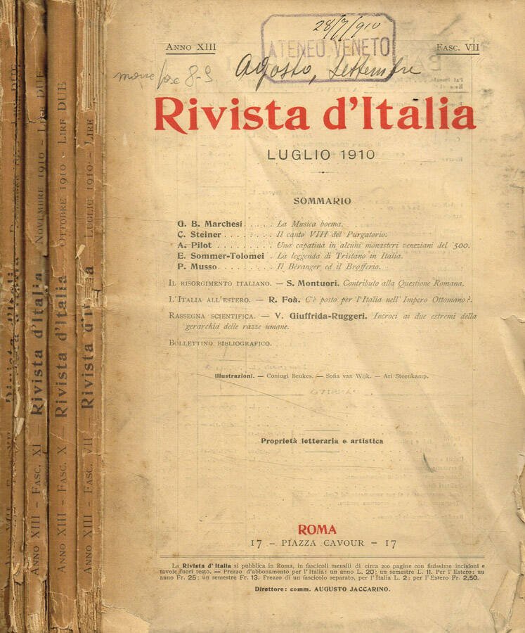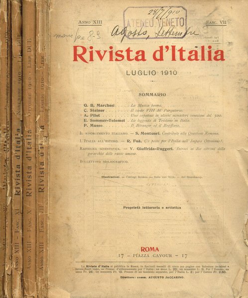 Rivista d'Italia. Lettere, scienza ed arti. Anno XIII, 1910, fasc.VII X XI XII | Libri antichi e moderni |