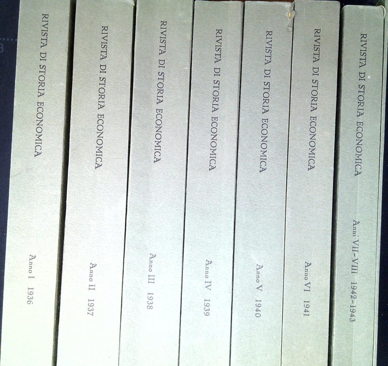 Einaudi, Luigi Rivista di storia economica. Torino, Einaudi 1977, Ristampa anastatica, 7 volumi più fascicolo introduttivo ; 26 cm Manca il cofanetto (60357)