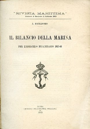In-8°, pp. 49, brossura editoriale. Numerosissime tabelle. Ottimo stato. Fascicolo monografico, interamente occupato dal contributo del Ramadoro sui bilanci della Marina Militare Italiana.