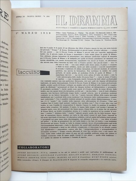 Rivista teatro Il Dramma numero 104 1∞ marzo 1950 | Libri antichi e moderni |