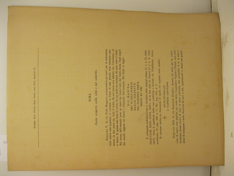 Roma. Nuove scoperte nella citta' e nel suburbio. Estratto dalle Notizie degli Scavi, anno 1911, fascicolo 5o | Libri antichi e moderni | Pasqui A.