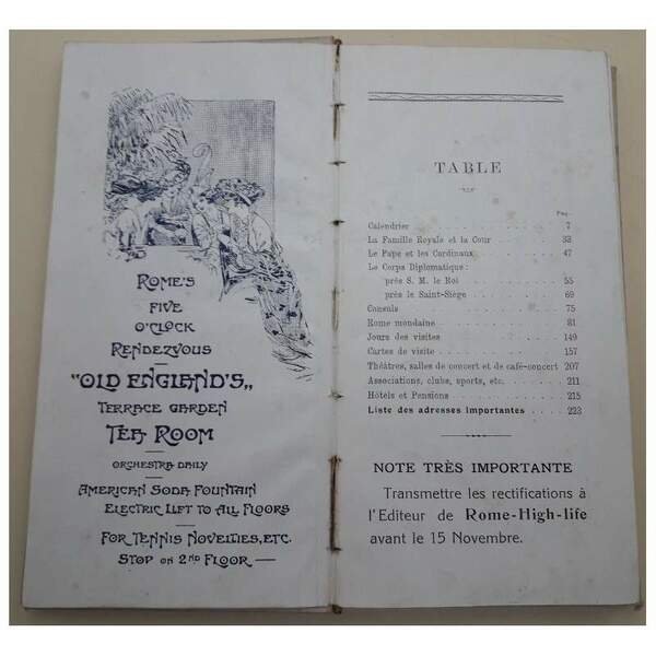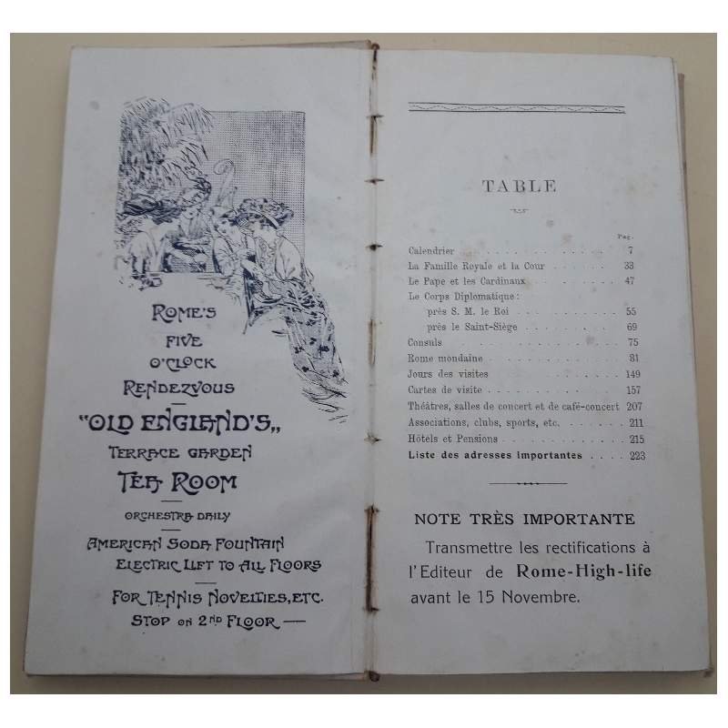 ROME-HIGH-LIFE-CARNET DES ADRESSES MONDAINES-DIX SEPTIEME ANNEE(1916)