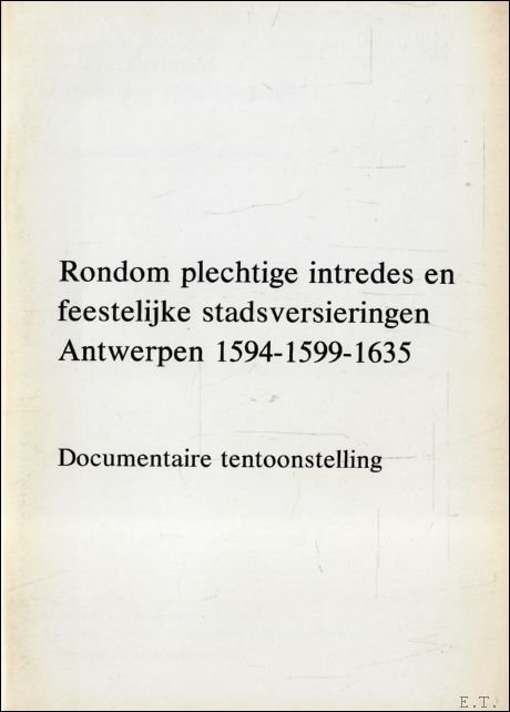 RONDOM PLECHTIGE INTREDES EN FEESTELIJKE STADSVIERINGEN. ANTWERPEN 1594-1599-1635. DOCUMENTAIRE TENTOONSTELING,