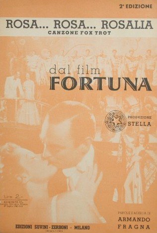 Canzone fox trot - Dal film 'Fortuna'. Parole e musica di Armando Fragna - in 8° - pp.2 pagine nn. - Brossura editoriale illustrata - Illustrazione a colori alla brossura - Partitura per Canto - Mandolino o Fisarmonica