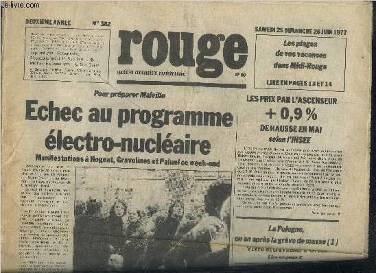 ROUGE - QUOTIDIEN COMMUNISTE REVOLUTIONNAIRE - SAMEDI 25 - DIMANCHE 26 JUIN 1977 - 2e ANNEE N�382 Sommaire : Echec au programme �lectro-nucl�aire - Vivre et travailler � Ursus - Les sis parties constitutionnels se rencontrent aujourd'hui pour signer . | Libri antichi e moderni | Collectif