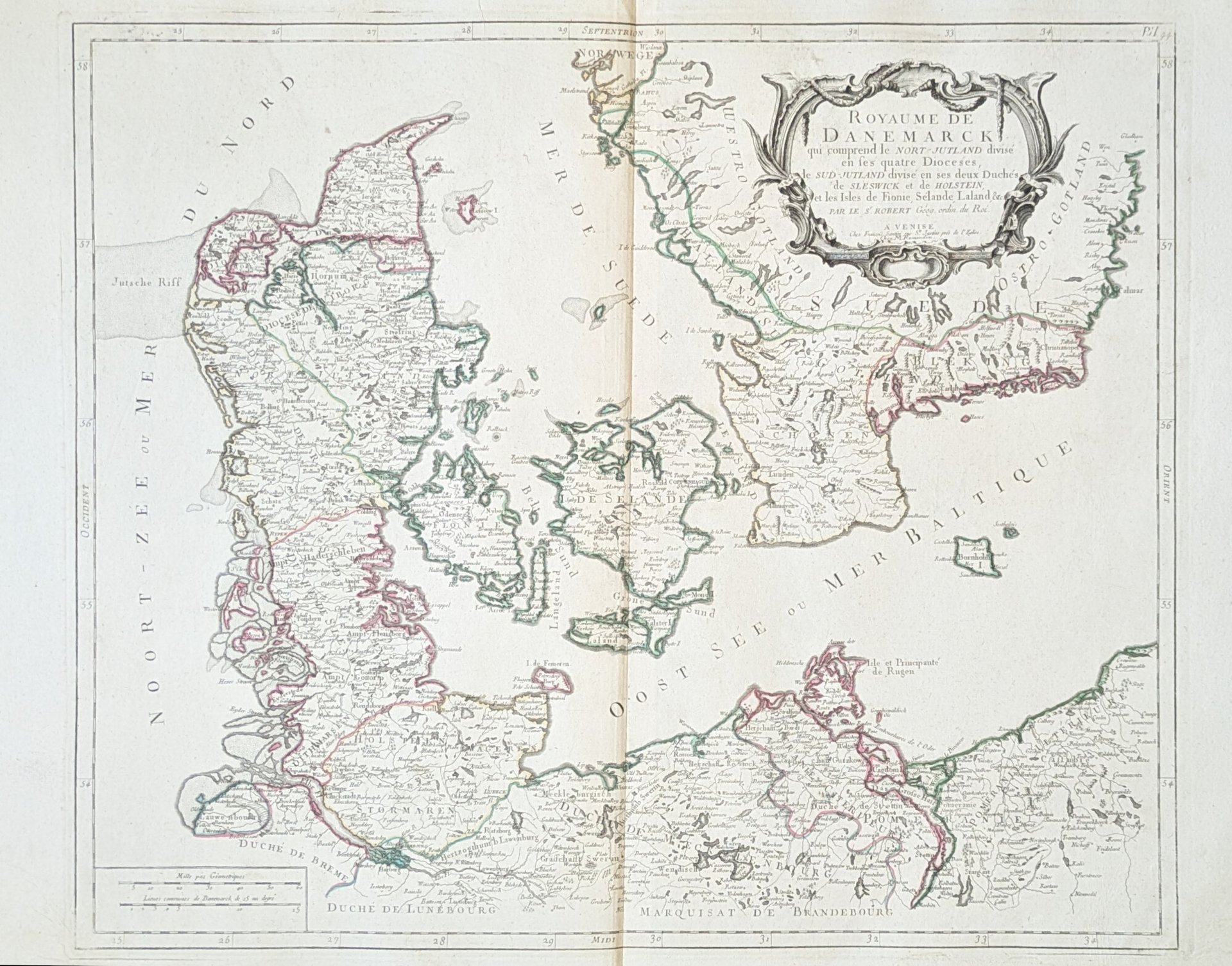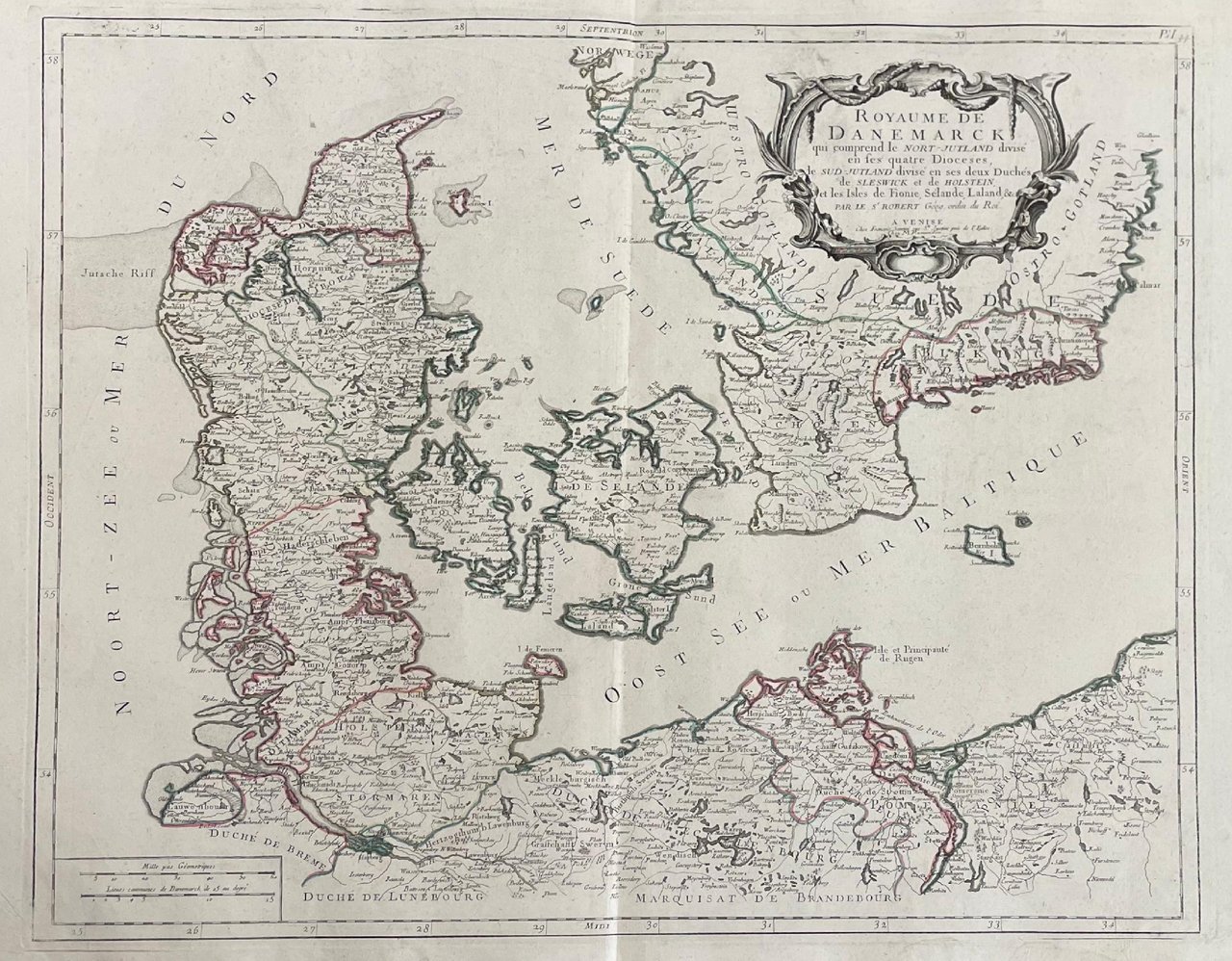 ROYAUME DE DANEMARCK QUI COMPREND LE NORT-JUTLAND DIVISE' EN SES QUATRE DIOCESES, LE SUD-JUTLAND DIVISE' EN SES DEUX DUCHES, DE SLESWICK ET DE HOLSTEIN, ET LES ISLES DE FIONIE, SELANDE, LALAND &C | Libri antichi e moderni | SANTINI PAOLO (1729 - 1793), ,SANTINI PAOLO (1729 - 1793)