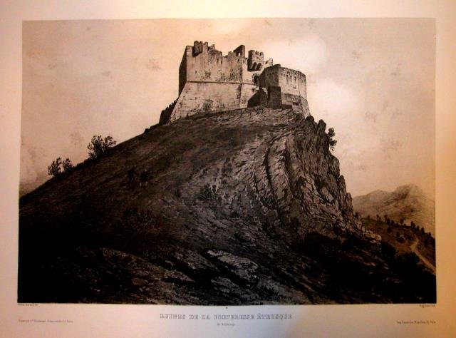 RUINES DE LA FORTERESSE ETRUSQUE DE VOLTERRAIO (Isola d'Elba). Riproduzione tratta dall'album "L'Ile d'Elbe" di André Durand.