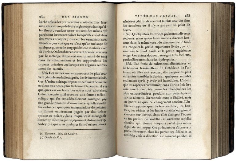 >in-8, pp. XXIV, 526, legatura del tempo m. tela, tit. e filetti oro al dorso. Dedica al conte d'Hunebourg. Prima edizione di questo trattato di semeiotica del medico francese (1772-1840) che analizza pressoché tutti i possibili sintomi delle malattie. Buon esemplare (alone d'umido nel margine esterno all'inizio del vol. ed alle pp. 209-230, strappetti al margine superiore di pp. 321 e 323). Wellcome Libr. III, p. 442.