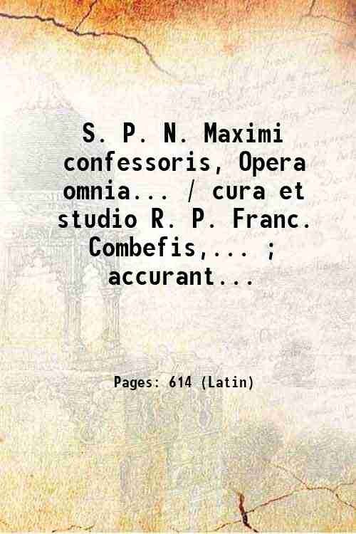 S. P. N. Maximi confessoris, Opera omnia. / cura et studio R. P. Franc. Combefis,. ; accurante et denuo recognoscente J.-P. Migne,. 1860