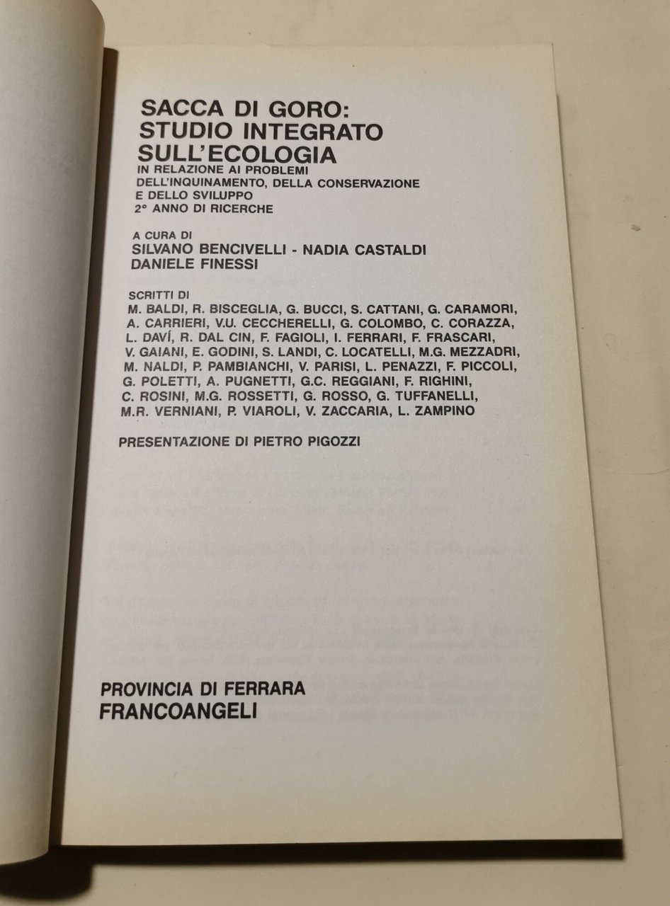 Sacca di Goro: studio integrato sull'ecologia in relazione ai problemi dell'inquinamento, della conservazione e dello sviluppo. 2º anno di ricerche | Libri antichi e moderni | Bencivelli, Silvano