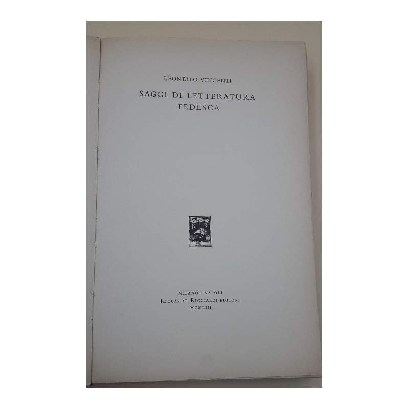 SAGGI DI LETTERATURA TEDESCA (1953) | Libri antichi e moderni | Vincenti Leonello