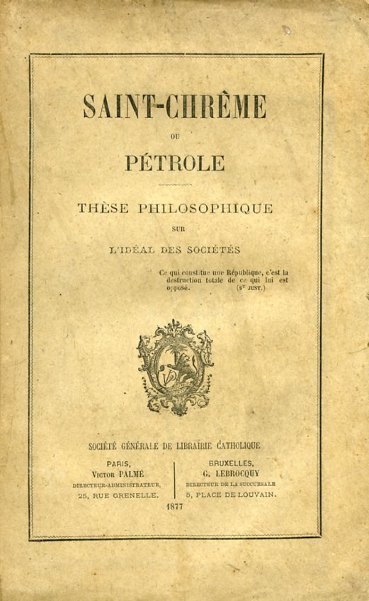 Saint - Chrême ou Pétrole. Thèse philosophique sur l'idéal des sociétés