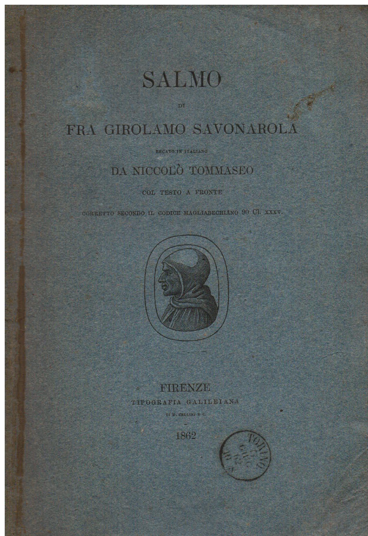 Salmo recato in italiano da Niccolò Tommaseo col testo a fronte corretto secondo il Codice Magliabechiano 90 Cl. XXXV | Libri antichi e moderni | Savonarola Girolamo