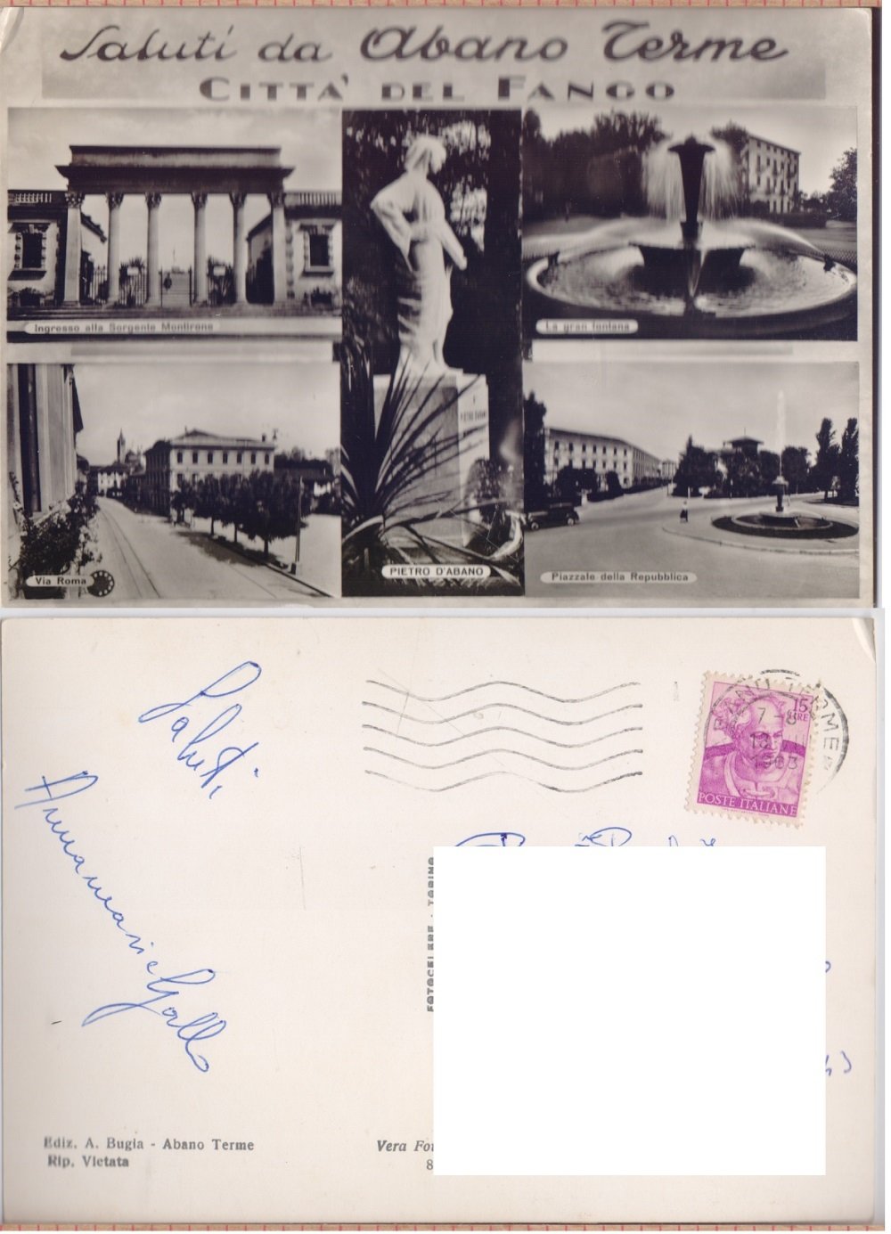 Saluti da Abano Terme (PD). Città del fango. Viaggiata