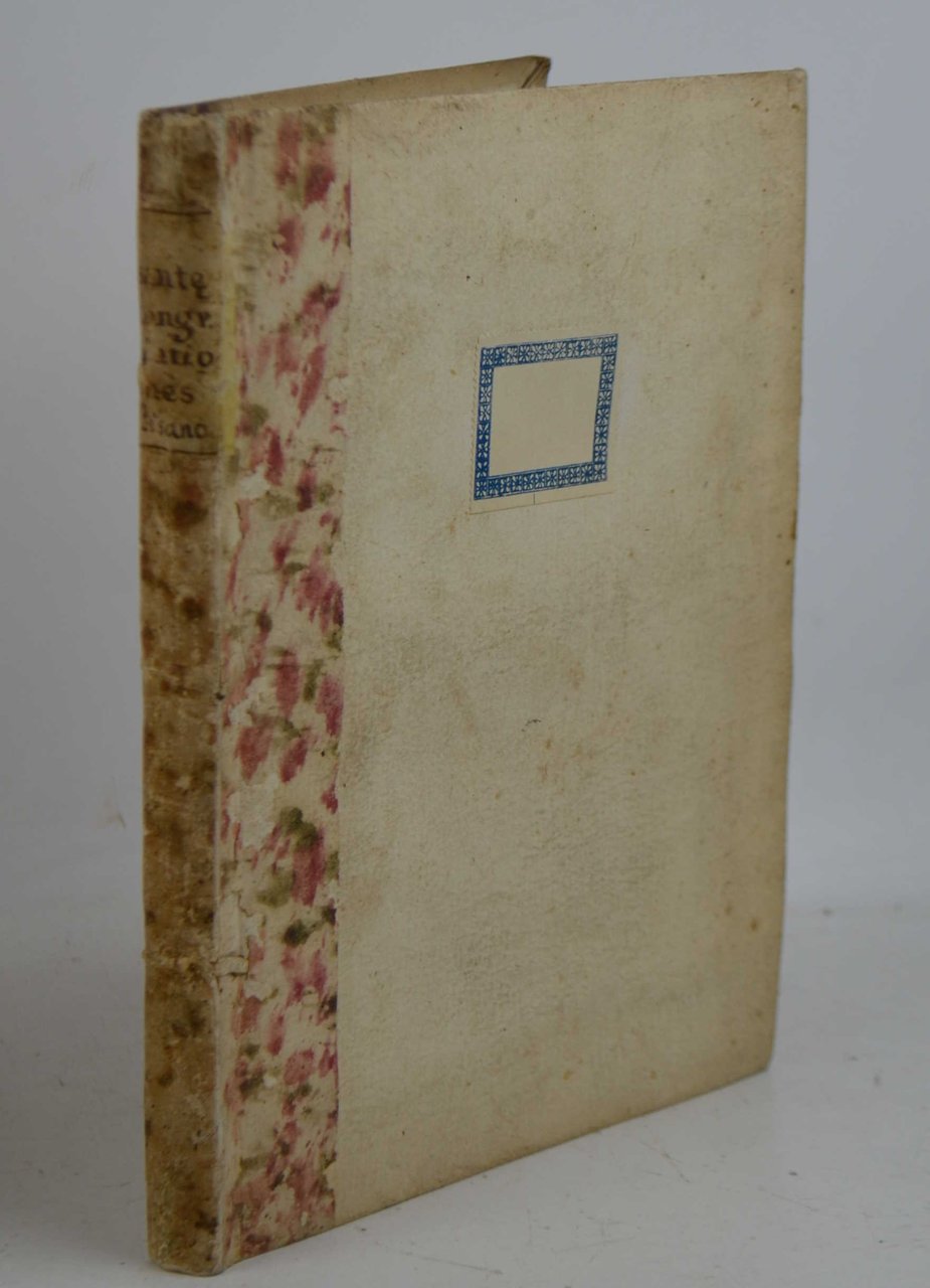 Cm. 23, pp. (8) 128, xxvii (1). Leg. strettamente coeva in cart. alla rustica con dorso ricoperto in carta decorata e titoli manoscritti. Margine destro del frontespizio rifilato, peraltro esemplare genuino, marginoso e ben conservato. Alla carta b4: Decretorum excellentissimi senatus collecta in materia funerum. Non comune. Interessante raccolta di leggi e regolamenti relativi al Clero della città di Verona.