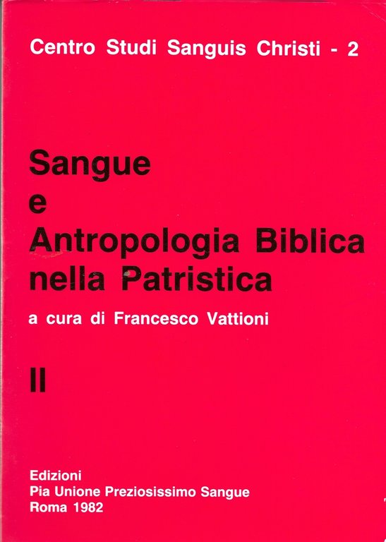 SANGUE E ANTROPOLOGIA BIBLICA NELLA PATRISTICA - VOLUME 1, 2 -