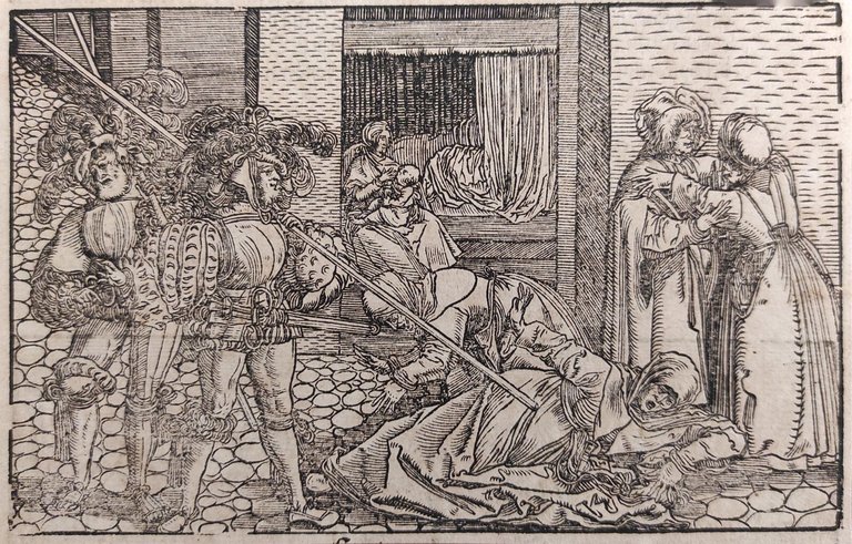Hans Weiditz è considerato uno dei maestri della xilografia rinascimentale tedesca, insieme a Holbein, Burgkmair e naturalmente Albrecht Dürer. Viene indicato come "Il Maestro Petrarca" in ragione delle oltre 250 illustrazioni xilografiche da lui realizzate per il De Remediis Utriusque Fortunae di Petrarca.Quella qui proposta è una delle incisioni appartenenti a questa suggestiva raccolta. xilografia cm. 10,3 x 15,8 Buono (Good) Buon es., leggere macchie del tempo.