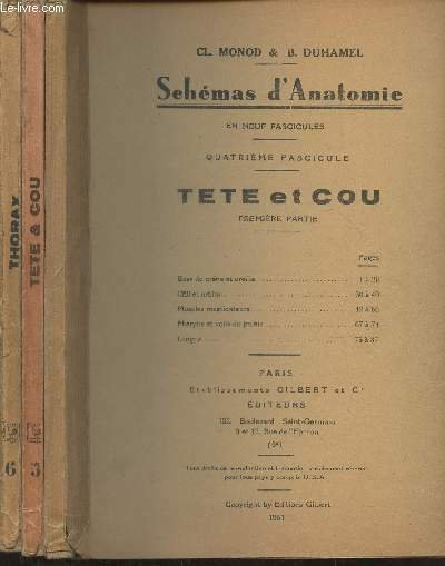Schémas d'anatomie Fascs. 4, 5 et 6 (3 volumes) Tête et cou 1ère et 2èùe parties + Thorax | Libri antichi e moderni | Monod Cl., Duhamel B.