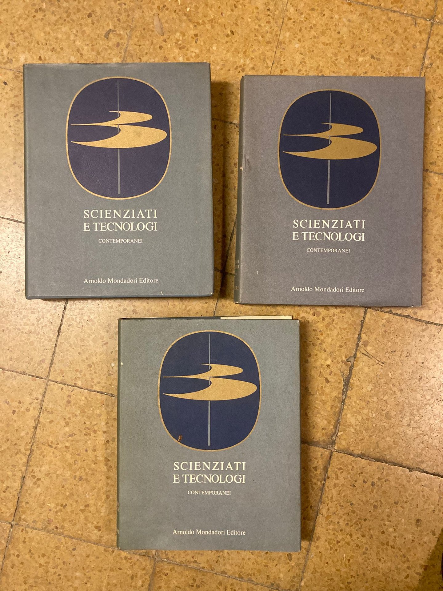 3 voll. in-4°, pp. 575; 575; 799; legatura editoriale t. tela blu con titoli in oro e inserti in tela e cartone bicolori ai piatti. Sovraccoperte di colore blu illustrate. Numerosissime illustrazioni in b.n. e a colori n.t. Prima edizione italiana. Imponente enciclopedia scientifica raccogliente, disposte in comodo ordine alfabetico, centinaia di biografie di scienziati e tecnologi dalla remota antichità al 1875. Il primo vol. raccoglie le biografie da Pietro d'Abano a Josiah Willard Gibbs; il secondo, da Grove Karl Gilbert a William John M. Rankine; il terzo, da Robert Ransome a Nikolaj Egorovic Zukovskij. Questo terzo volume contiene, alle pp. 321-749, ampi annali della scienza e della tecnica dalle origini al 1900; seguono l'indice generale degli autori (oltre un centinaio, fra i più accreditati specialisti internazionali, rappresentativi dei principali paesi del mondo, dagli Stati Uniti alla Russia al Giappone) e quello degli scienziati e inventori citati. Le voci sono tutte firmate e accompagnate da una stringata bibliografia.