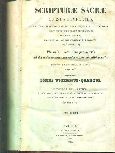 Scripturae Sacrae cursus completus tomus vigesimus quartus | Libri antichi e moderni | aa.vv.