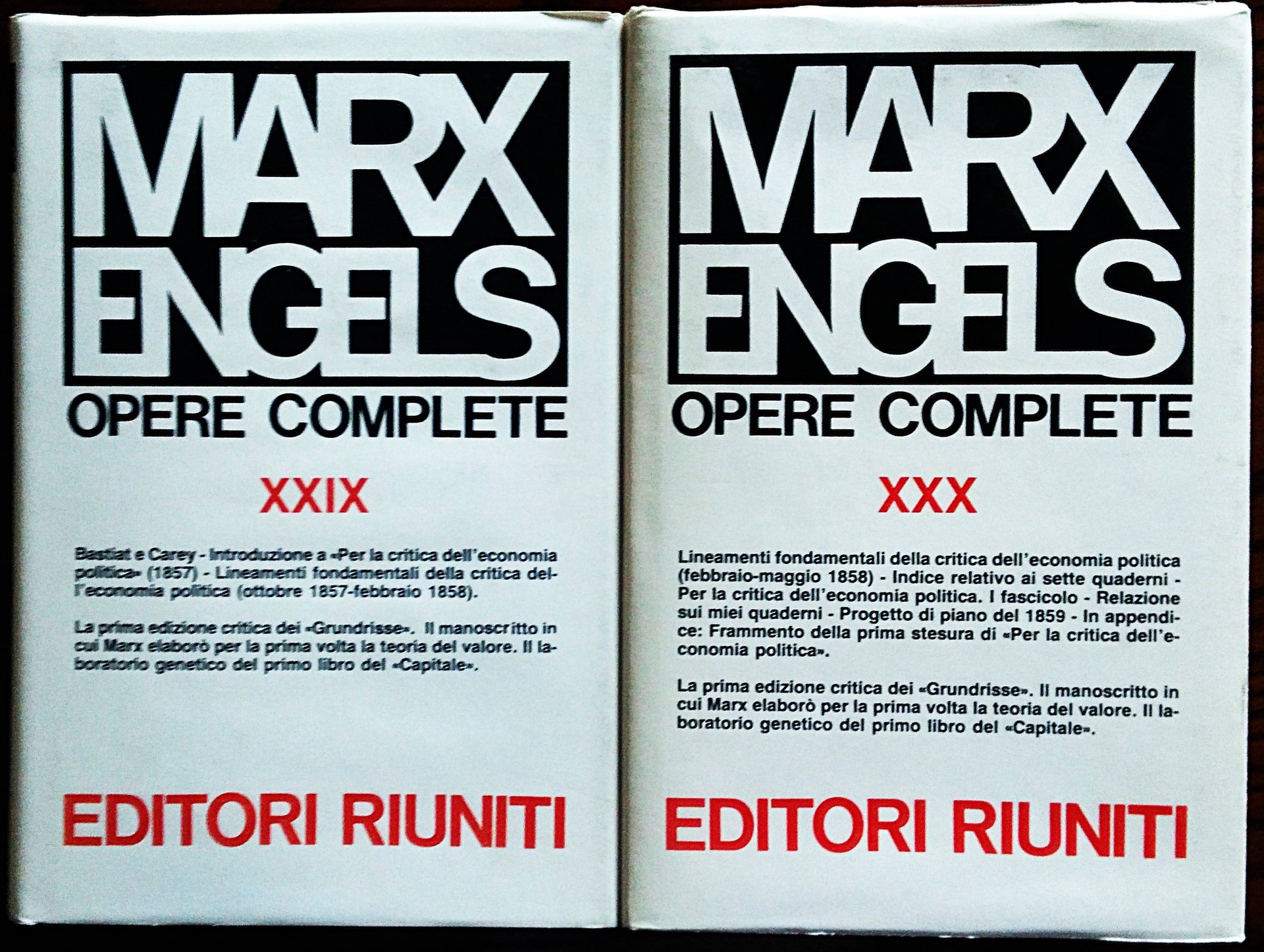 Roma, Editori Riuniti, 1986. 8°,due volumi, pp. VIII, 597,(3); (6), 635,(3), legature editoriali, sovracoperte. Dorsi leggermente sbiaditi, ottime copie. Sono i volumi 29 e 30 delle Opere Complete. Per il contenuto dei due volumi guardare la fotografia allegata.