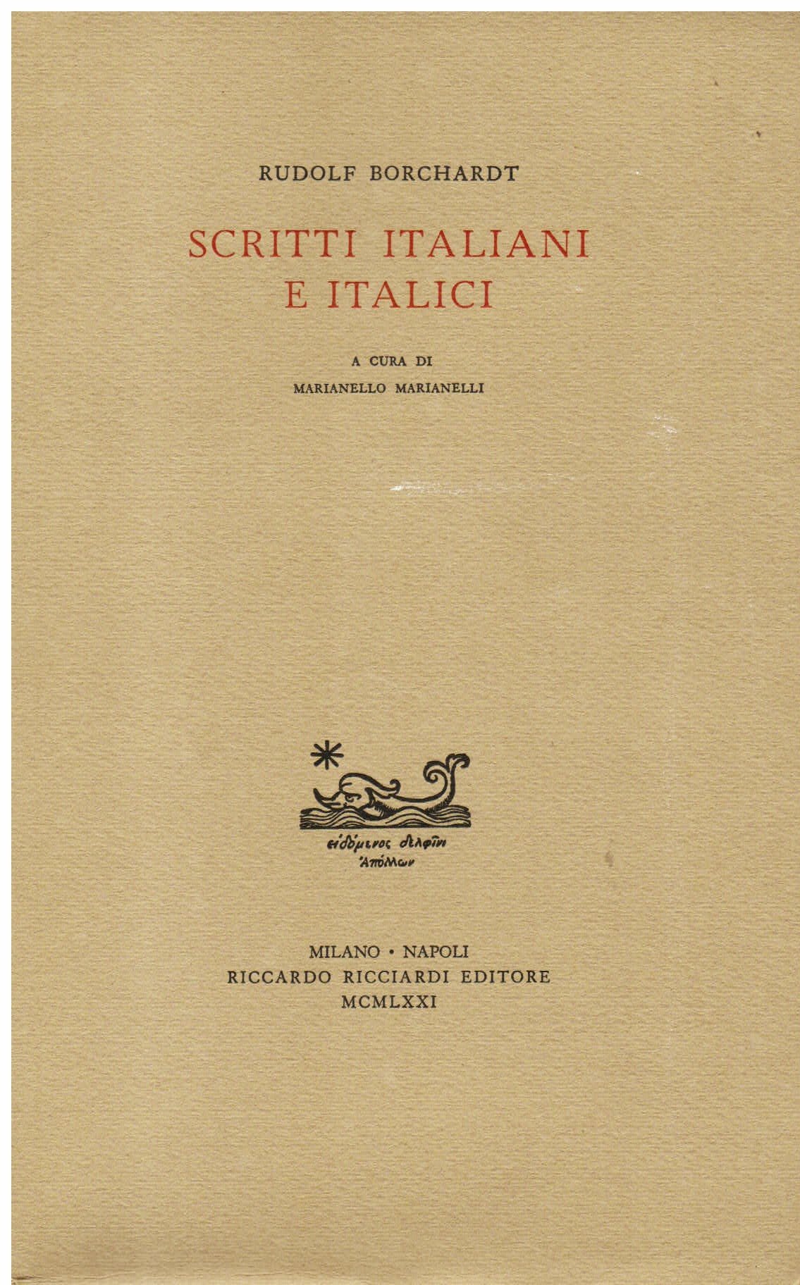 Scritti italiani ed italici. A cura di Marianelli Marianelli | Libri antichi e moderni | Borchardt Rudolf