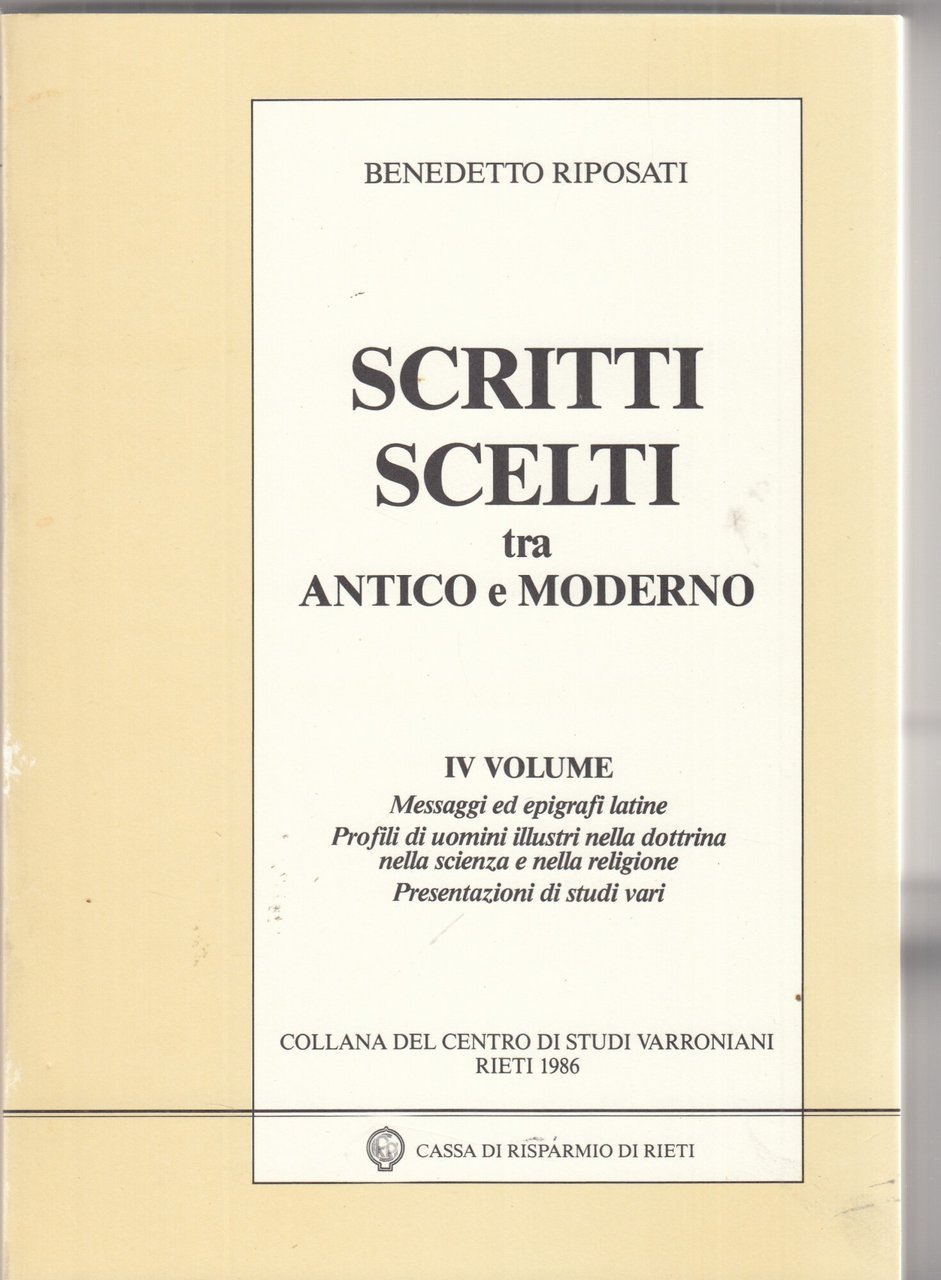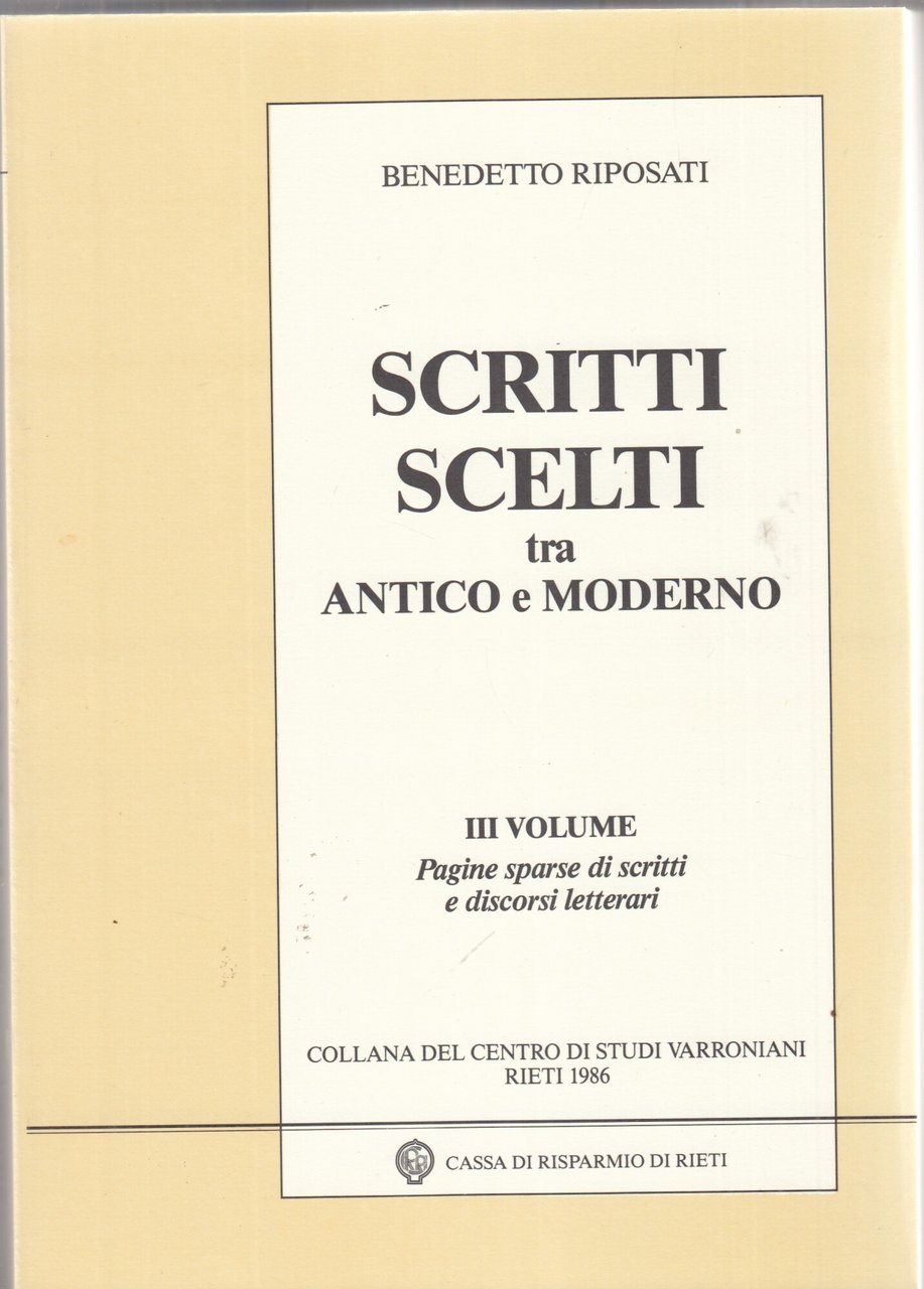 Scritti scelti tra antico e moderno. 4 volumi in cofanetto | Libri antichi e moderni | Benedetto Riposati, ,Benedetto Riposati