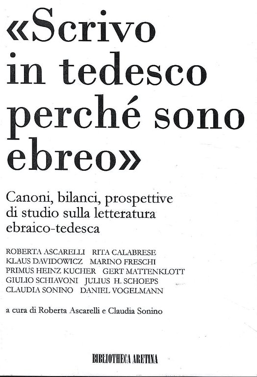 "Scrivo in tedesco perchè sono ebreo". Atti del Convegno "Canoni, bilanci, prospettive di studio sulla letteratura ebraica-tedesca". Arezzo, 6-7 dicembre 2005 | Libri antichi e moderni | Ascarelli, R. - Sonino, C. (a cura di), ,Ascarelli, R. - Sonino, C. (a cura di)