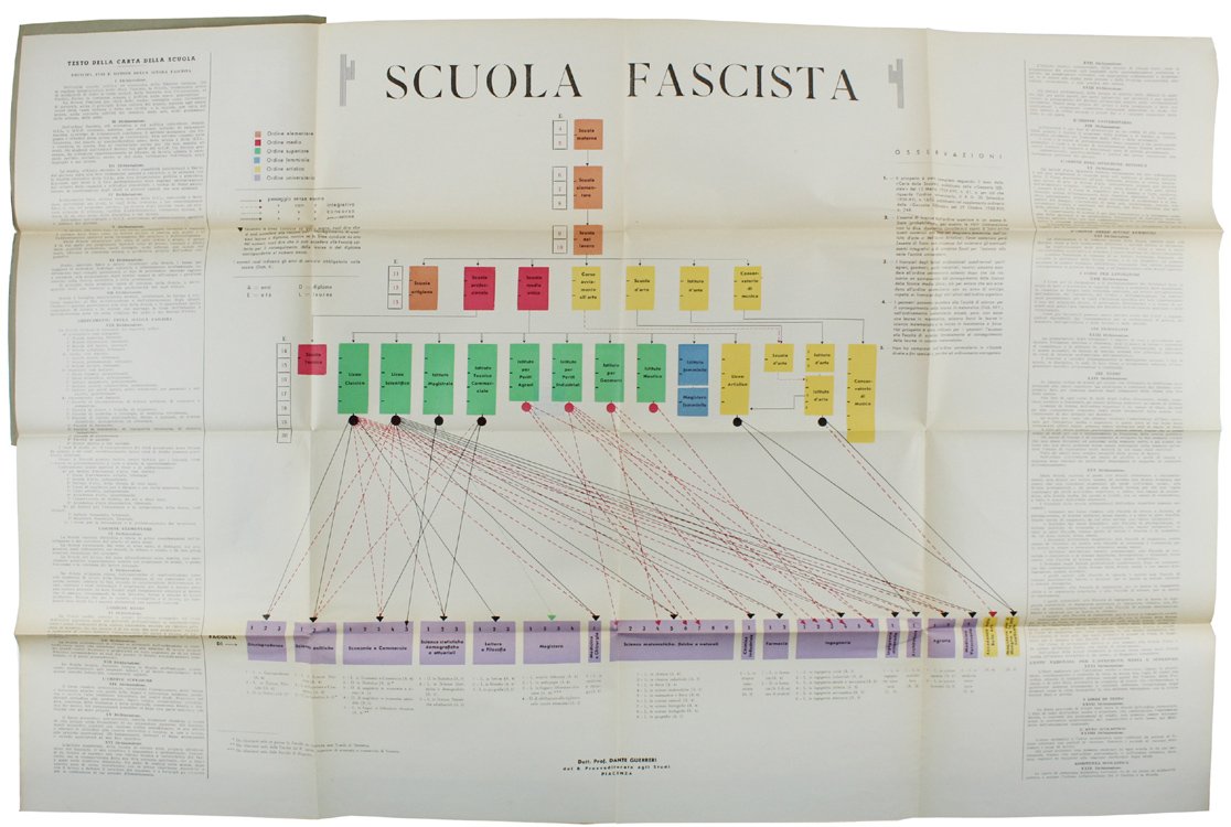 (Codice MF/0532) In 8° Una pagina di testo con l'ordine del giorno e il Manifesto a colori più volte ripiegato della "CARTA DELLA SCUOLA" 87x56 cm. Brossura editoriale, traccia di etichette. Ottimo stato. ~~~ SPEDIZIONE IN ITALIA SEMPRE TRACCIATA