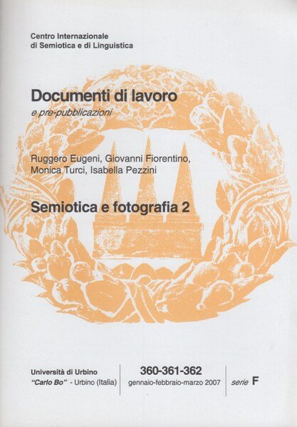 In-8 (Cm 24 x 17), pp. 58, brossura editoriale. Collana Documenti di lavoro e pre-pubblicazioni 360-361-362 Gennaio, Febbraio, Marzo 2007 serie F (Semiotiche visive e audio-visive). Testi in Italiano e Inglese. OTTIMO - Una teoria della fotografia nel cinema moderno. Blow Up di Michelangelo Antonioni - La fotografia: Il medium, lo scandalo e il silenzio - A well told lie is worth a thousand facts, a well taken photograph is worth a thousand novels. Photography in docu-fiction narrative, the case of Michael Ondaatje's. The collection work of Billy the kid and Running in the Family - Il corpo figurato: gli Artigiani di Ciriaco Campus.